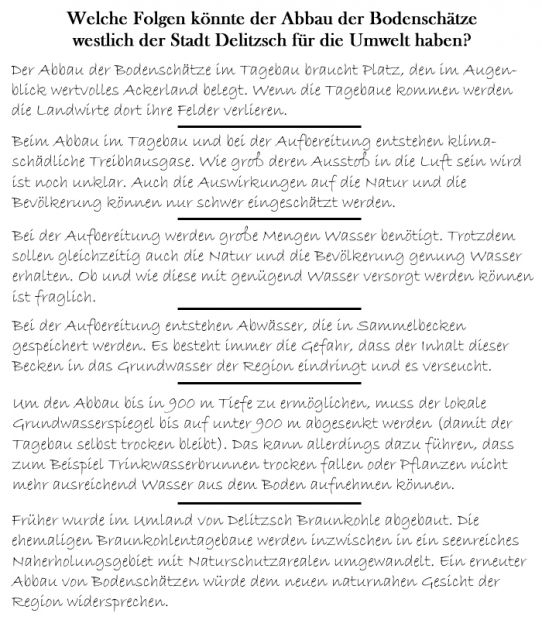 Wenn die Bodenschätze bei Delitzsch abgebaut werden sollten, würde das bedeuten: |